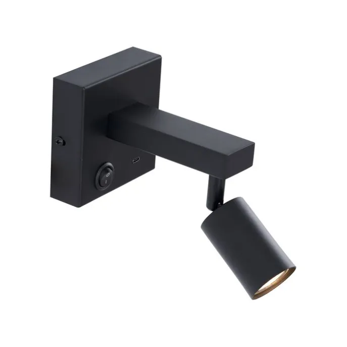 Moderne wandlamp zwart met USB-C kantelbaar – Rex