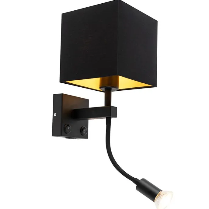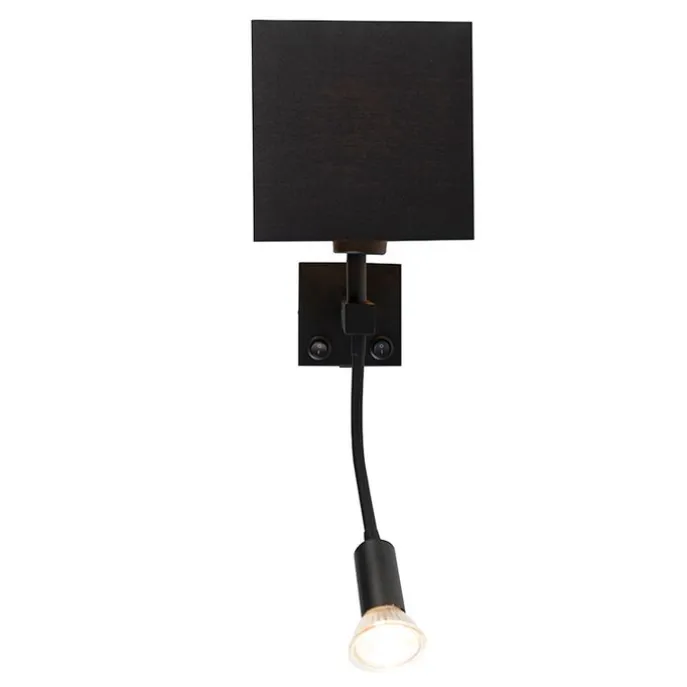 Moderne wandlamp zwart met USB en vierkante zwarte kap – Zeno
