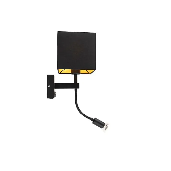Onze wandlamp Zeno is nu uitgebreid met een USB aansluiting! Deze wandlamp is perfect om je muur een moderne sfeer te geven. Het is een praktische en stijlvolle wandlamp uitgevoerd in een zwarte kleur met een zwarte vierkanten kap en gouden binnenkant. De charmante wandlamp is zo gemaakt om jou te voorzien van de perfecte verlichtingscombinatie door de ingebouwde leeslamp die je zelf kan verstellen naar jouw zin. De lamp in de kap heeft een lichtbron met een E27 fitting tot maximaal 60 Watt nodig en de flexarm een lichtbron passen voor GU10 maak je de Zeno af. Let op: deze zijn niet mee geleverd maar kun je eenvoudig bestellen in onze webshop. De lamp is eventueel ook dimbaar met externe dimmer (niet inbegrepen)Deze Zeno is makkelijk te gebruiken dankzij de aan/uit knoppen op de montageplaat van de lamp. Hierdoor is de lamp en de leeslamp afzonderlijk te bedienen. Hij heeft een diameter van 18 cm, en een totale hoogte van 42 cm. De zwarte lampenkap in combinatie met goud is een echte eyecatcher die niet kan misstaan! Perfect als leeslampje in jouw slaapkamer.