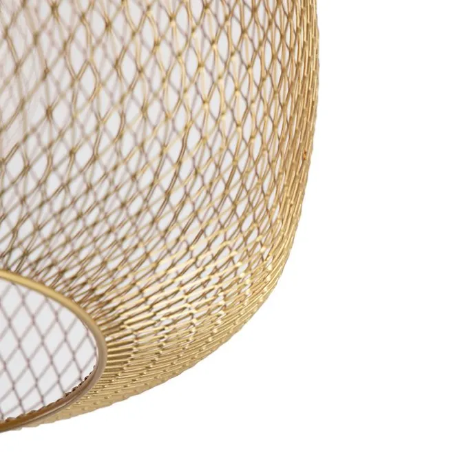 Een stoere plafondlamp afgewerkt in een gouden kleur wat hem erg elegant maakt. Deze prachtige Bliss heeft een diameter van 30 cm en een hoogte van 25,5 cm; een ware eyecatcher dus! De plafondplaat heeft een diameter van 12 cm. De lichtbron is zichtbaar in de kap. Kies daarom voor een stoere variant passend in een E27 fitting (max. 60 Watt). De lamp is tevens dimbaar met een externe dimmer. Zorg voor gezelligheid in huis met de Bliss Mesh! Het mooiste effect krijg je wanneer je er twee langs elkaar ophangt in bijvoorbeeld jouw woonkamer.