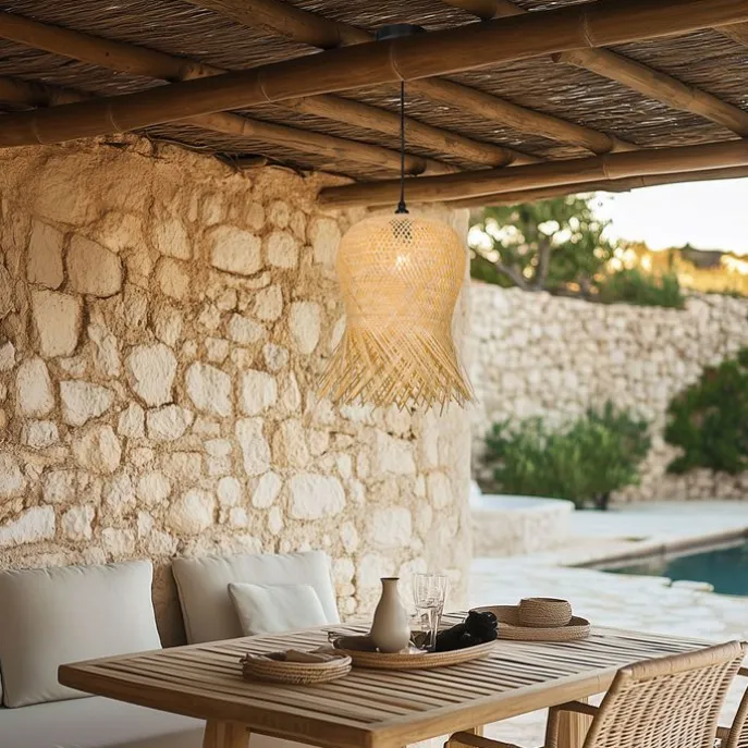 Maak jouw tuin klaar voor een vleugje oosterse elegantie met Carlos, de buiten hanglamp die opvalt door zijn bamboe kap. Met een gewicht van slechts 0.5 kg en een IP44-classificatie is Carlos ideaal voor beschutte plekken zoals een overkapping. De hanglamp, met een diameter van 38 cm en een hoogte van 172 cm, is vakkundig afgewerkt in een natuurlijke kleur die perfect past bij de oosterse sfeer. Vergeet niet een E27 lichtbron apart aan te schaffen, want deze wordt niet meegeleverd. Geniet van gezellige avonden buiten, want Carlos creëert een sfeer die je bijna doet vergeten naar binnen te gaan.