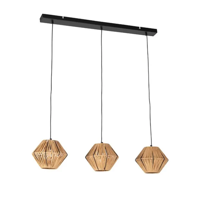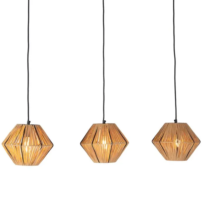 Haal een Oosterse eyecatcher in huis met Straw. Deze hanglamp is gemaakt van zwart staal met drie rotan kappen. Hij heeft een lengte van 120 cm, een breedte van 20 cm en is verstelbaar in de hoogte met een minimale hoogte van 90 cm en een maximale hoogte van 100 cm. De montageplaat heeft een hoogte van 3,5 cm, een lengte van 100 cm en een breedte van 8 cm. Het snoer heeft een lengte van 72,5 cm. De drie benodigde E27 lichtbronnen moeten er nog los bijbesteld worden. Deze lamp is dimbaar met een externe dimmer (dimmer niet inbegrepen). Haal de Oosterse sfeer in huis met onze mooie Straw.