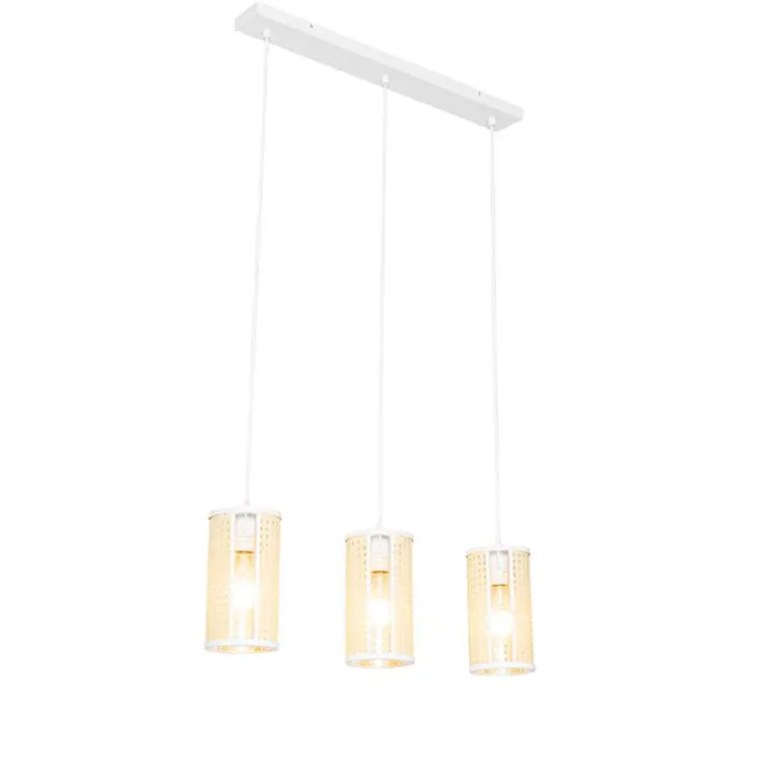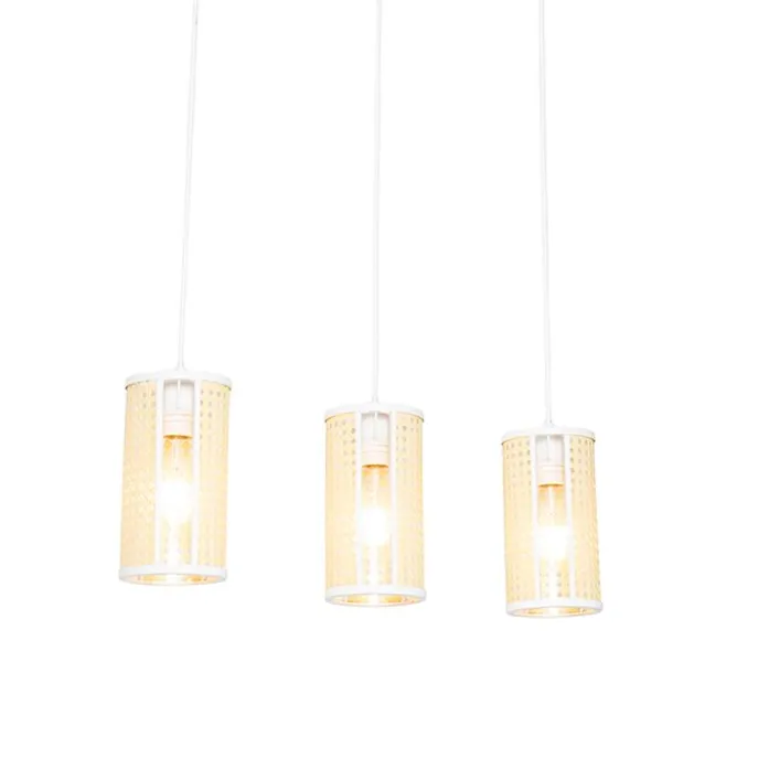 Oosterse hanglamp wit met rotan 3-lichts langwerpig – Akira