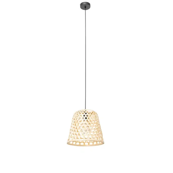 Breng wat warmte in huis met deze Oosterse hanglamp. Rayan is gemaakt van staal met bamboe en is afgewerkt in het zwart met naturel. De hanglamp heeft een diameter van 30 centimeter en een hoogte van 150 centimeter. Extra handig: Rayan is te verstellen in hoogte tot minimaal 58,5 centimeter.De montageplaat heeft een hoogte van 2,5 centimeter en een diameter van 10 centimeter. Ga voor wat extra sfeer in huis door de lamp te dimmen (dimmer niet inbegrepen). Vergeet niet om nog een lichtbron met E27 fitting van maximaal 25 watt er los bij te bestellen. De hanglamp komt inclusief lampenkap en deze heeft een diameter van 30 centimeter en een hoogte van 26 centimeter. Rayan komt goed tot zijn recht in bijvoorbeeld de eetkamer of wat dacht je van de slaapkamer? Waar wacht je nog op!