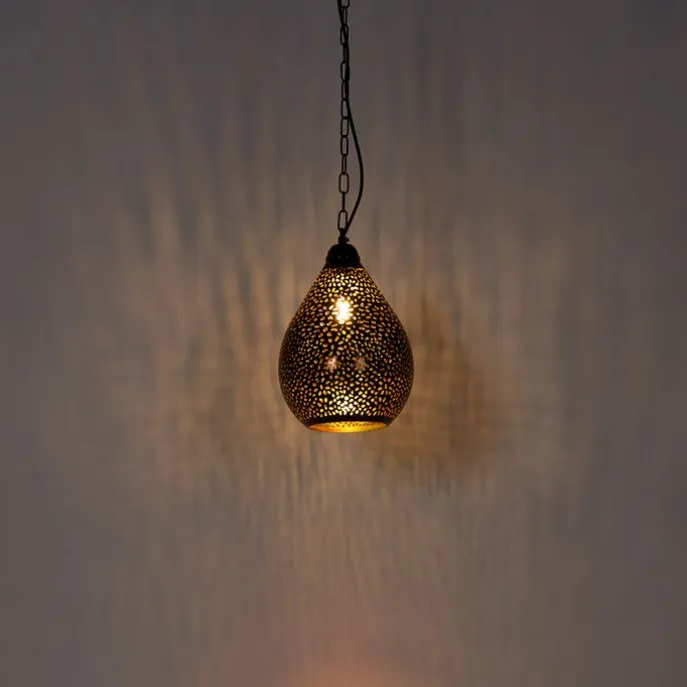 Oosterse hanglamp zwart met koper – Maru 5