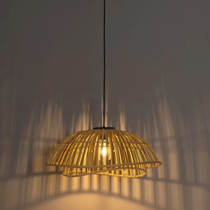 Oosterse hanglamp zwart met naturel bamboe 62 cm – Pua