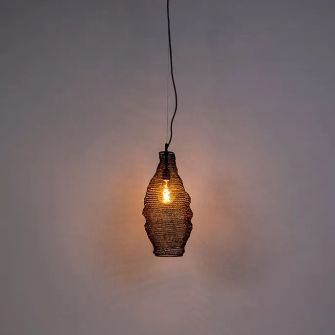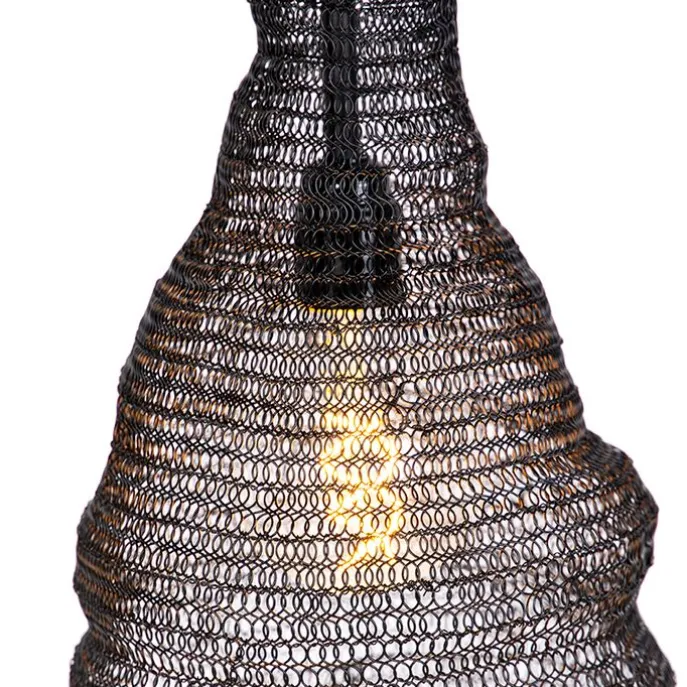 Onze Nidum Rombo is een lamp die je interieur in een Oosterse sfeer stopt! Hij is afgewerkt met zwart gaas waardoor de lichtbron mooi zichtbaar is. Het geeft een mooi effect aan de wand en aan het plafond. Je kan dus het best kiezen voor een decoratieve lichtbron! Het is wel nodig dat deze een E27 fitting heeft (max. 25 Watt). Deze hanglamp staat mooi boven jouw eettafel of in de hal. Ook je slaapkamer krijgt een Oosters tintje met deze Nidum. Hij heeft een hoogte van 181 cm, de kap heeft een diameter van 26 cm en een hoogte van 46 cm; een echte eyecatcher dus! De montageplaat voor aan het plafond heeft een diameter van 12 cm. De lamp is tevens dimbaar met een externe dimmer.Maak je interieur compleet met deze Oosterse hanglamp! De Nidum is handgemaakt, dus de vorm van de kap kan afwijken van de foto! Let op: deze lamp wordt in een kleinere doos geleverd waardoor je de kap zelf nog even moet uittrekken. En dan: ophangen en genieten!