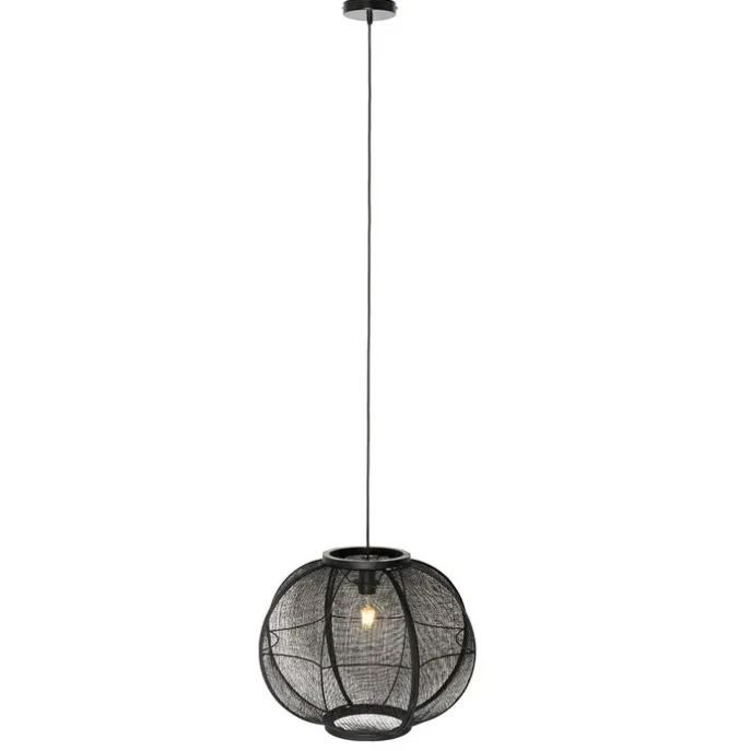 Oosterse hanglamp zwart stof 48 cm – Rob