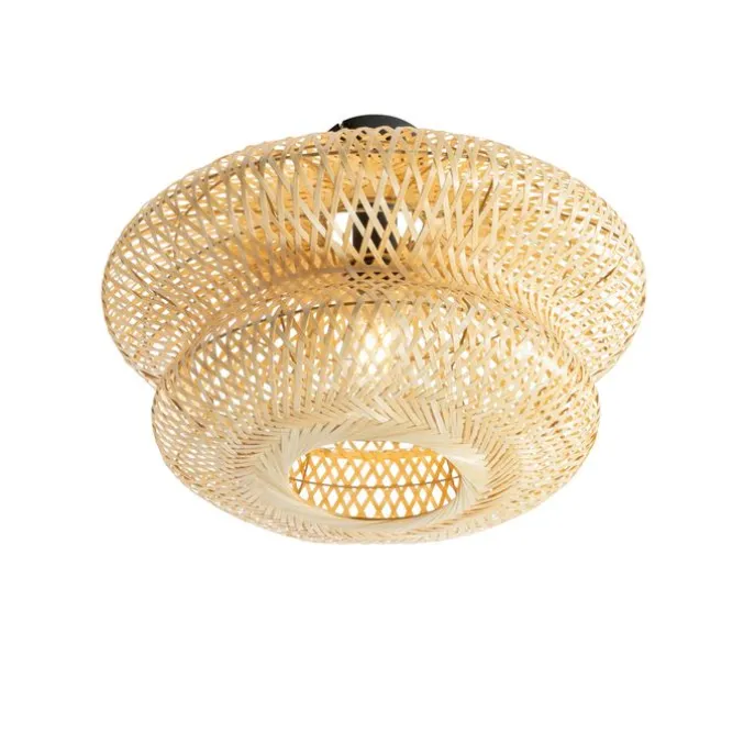 Ostrava Double: natuurlijke charme met een oosterse twist!Plafondlamp Ostrava Double brengt warmte en sfeer in je interieur met zijn prachtig gevlochten bamboe design. De unieke organische vorm en het opengewerkte patroon zorgen voor een speels lichteffect op het plafond en de muren, wat een gezellige en oosterse sfeer creëert.Perfect voor liefhebbers van natuurlijke materialen en een bohemien of Japandi interieurstijl. Of je hem nu in de woonkamer, slaapkamer of hal hangt, deze lamp voegt direct karakter toe aan elke ruimte. Haal de rust en schoonheid van bamboe in huis en bestel de Ostrava Double vandaag nog!