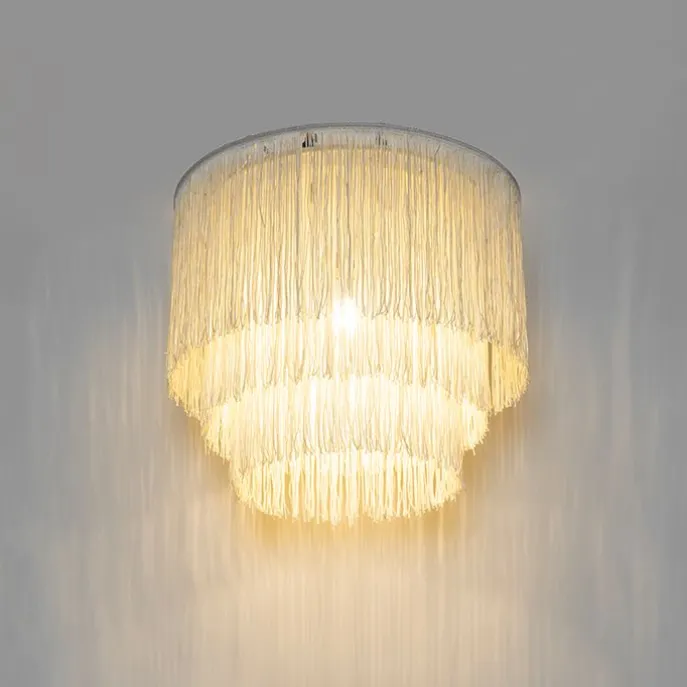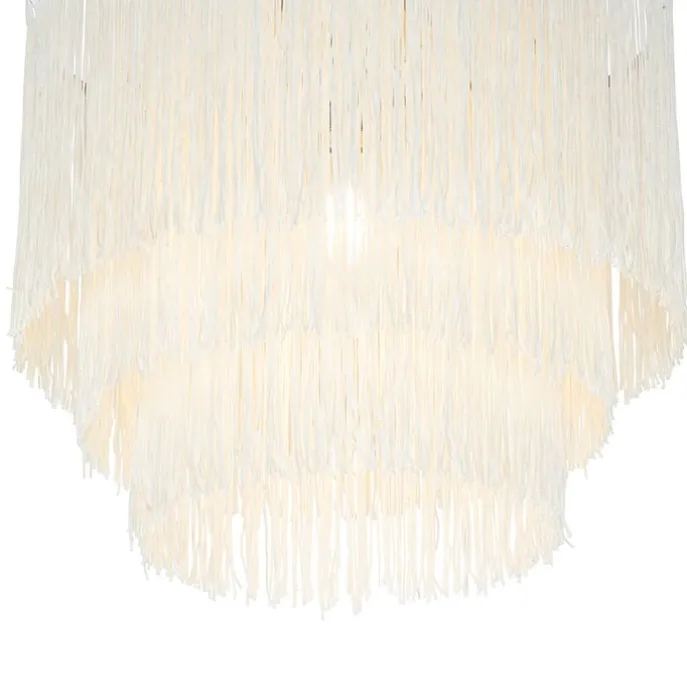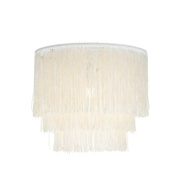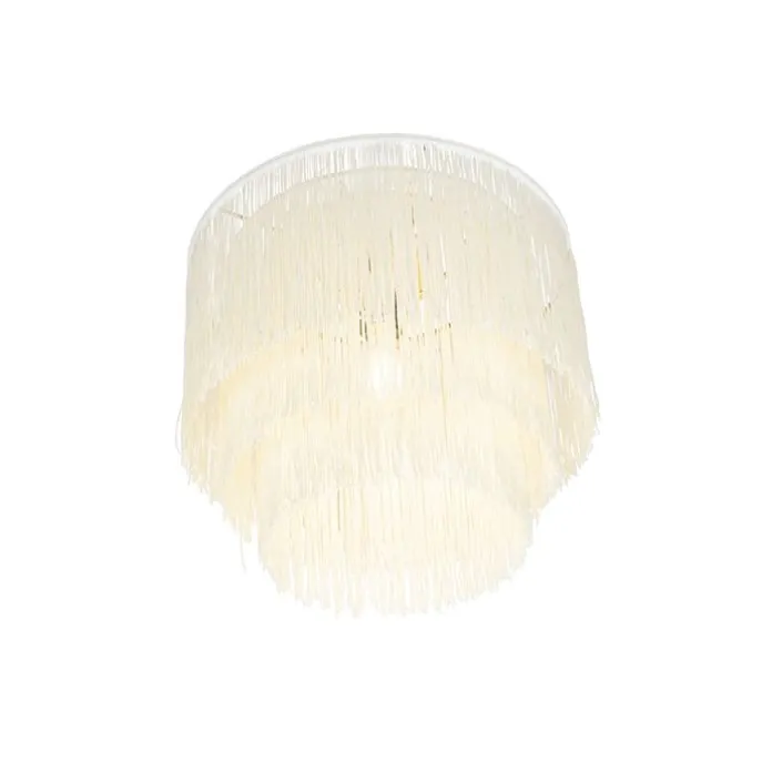 Oosterse plafondlamp goud crème kap met franjes – Franxa