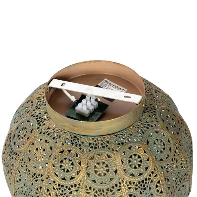 Plafondlamp Baloo voelt zich helemaal thuis in een oosters interieur. De lamp is gemaakt van staal en is afgewerkt in het groen met goud. De lamp heeft een diameter van 28.5 cm en een hoogte van 24.5 cm. Vergeet niet nog een lichtbron met E27 fitting er los bij te bestellen. Deze wordt er niet bij geleverd. Ga voor extra sfeer in huis door de plafondlamp te dimmen. Baloo is dimbaar (dimmer niet inbegrepen). Met Baloo haal je altijd het juiste licht in huis!