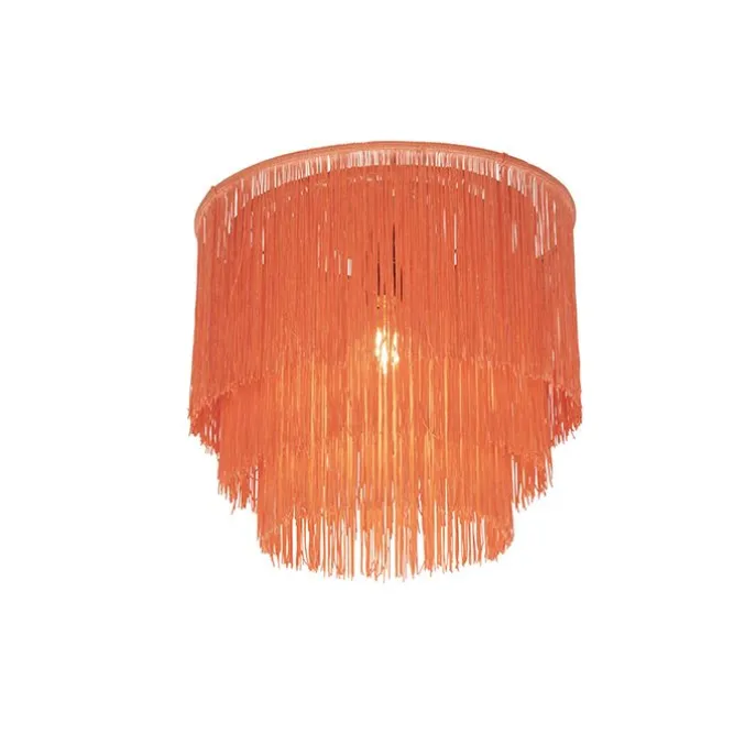 Oosterse plafondlamp goud roze kap met franjes – Franxa