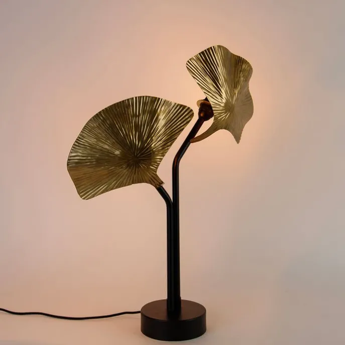 Oosterse tafellamp messing met zwart 2-lichts – Louka