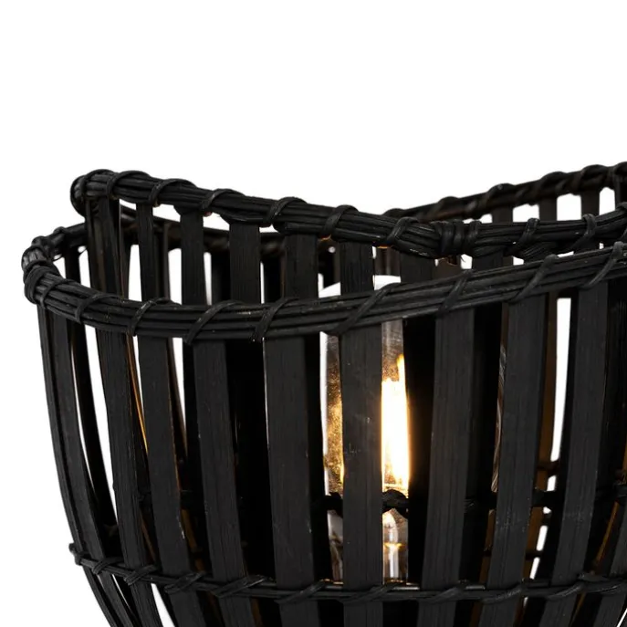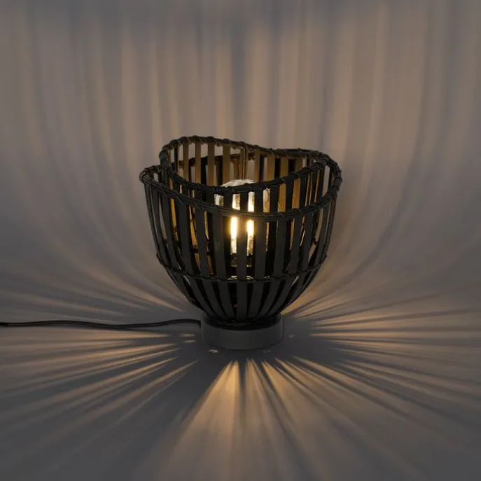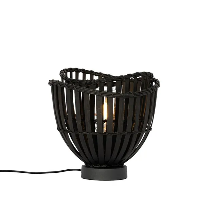 Oosterse tafellamp zwart bamboe 25cm – Pua