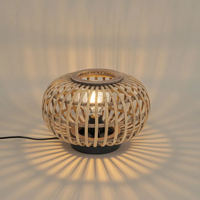 Oosterse tafellamp zwart met bamboe – Amira