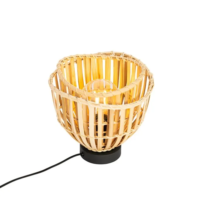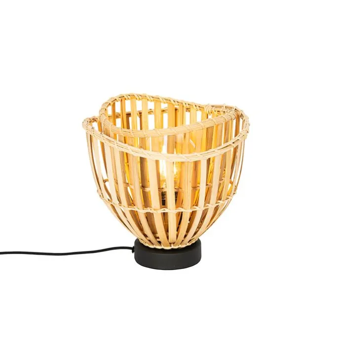 Oosterse tafellamp zwart met naturel bamboe – Pua