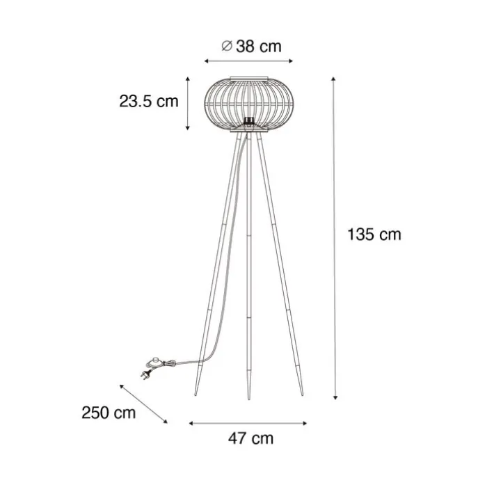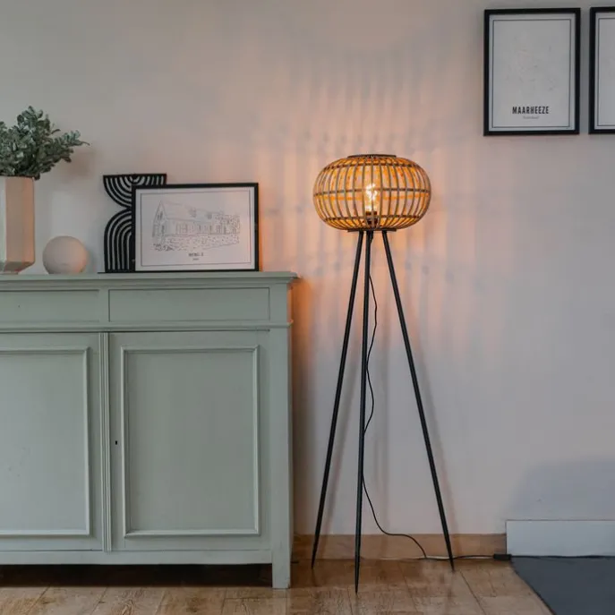 Oosterse tripod vloerlamp bamboe – Amira