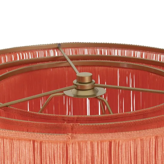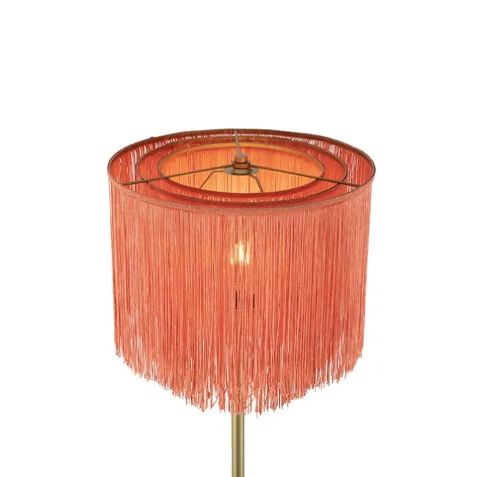 Oosterse vloerlamp goud roze kap met franjes – Franxa