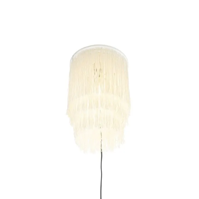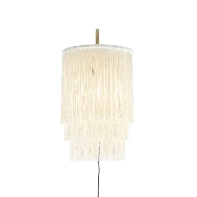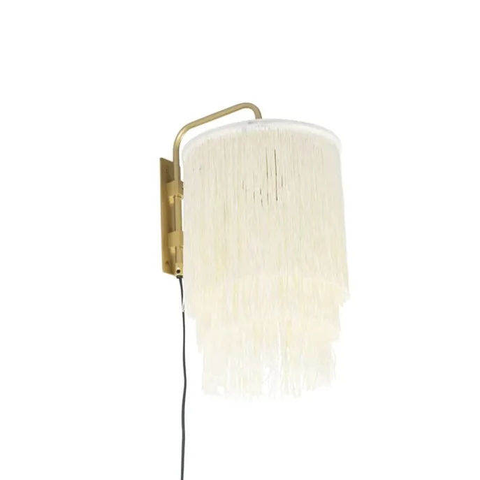 Oosterse wandlamp goud crème kap met franjes – Franxa