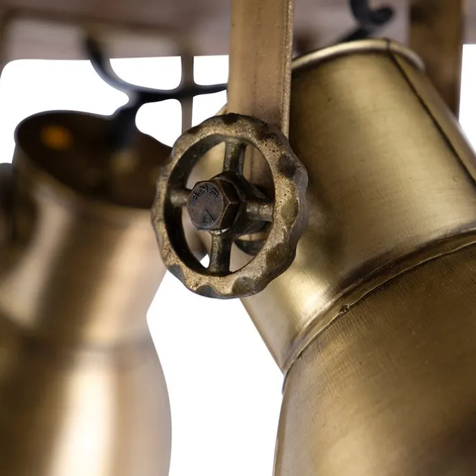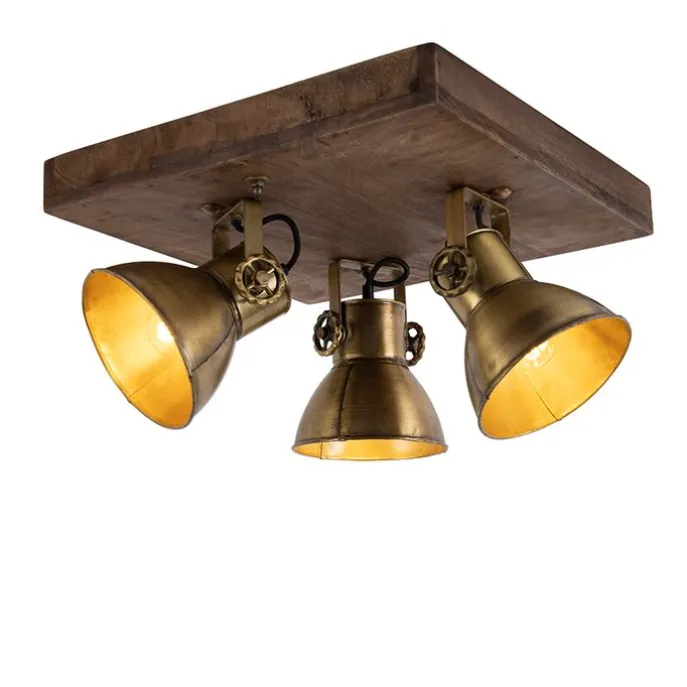 Plafondlamp brons met hout 3-lichts – Mangoes