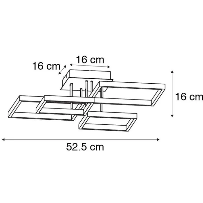 Haal een echte designlamp in huis met onze Lejo. Deze plafondlamp is gemaakt van staal en aluminium met kunststof en afgewerkt in een gouden kleur. Hij heeft een diepte van 52,5 cm, een hoogte van 16 cm en een lengte van 52,5 cm. De montageplaat heeft een hoogte van 4 cm, een lengte van 16 cm en een breedte van 16 cm. De vier lichtpunten zitten vast in het armatuur en gaan gemiddeld 30.000 branduren mee en stralen warm wit licht uit. Je maakt het in de avond extra gezellig met de meegeleverde dimmer. Maak jouw interieur compleet met deze Lejo plafondlamp!