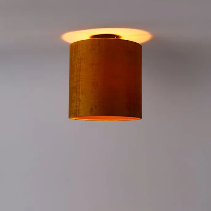 Plafondlamp mat zwart velours kap goud 25 cm – Combi
