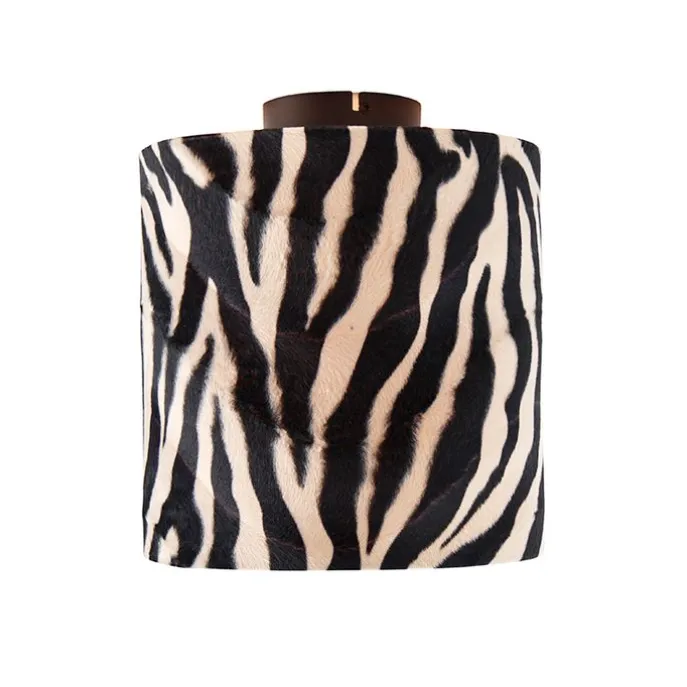 Plafondlamp mat zwart velours kap zebra dessin 25 cm – Combi