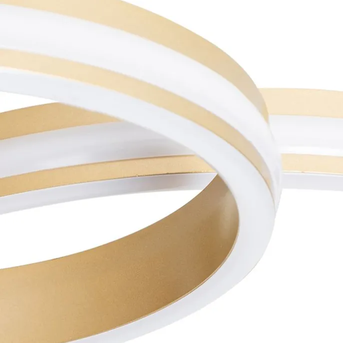 Wauw, wat een toffe plafondlamp is Navara! De vier lichtgevende cirkels zorgen voor een prachtig lichteffect in de ruimte. De plafondlamp is gemaakt van aluminium met kunststof en staal. Hij is afgewerkt in het goud, dat maakt hem erg modern. Hij heeft een hoogte van 13 cm, lengte van 78 cm en breedte van 64 cm. De montageplaat heeft een diameter van 20 cm en een hoogte van 4 cm. Rondas beschikt over niet-vervangbare LED verlichting. Deze heeft een lichtvermogen van 3118 lumen en 2700 Kelvin. Daarmee geeft hij erg veel licht! De lamp is ook dimbaar met de 3-staps dimmer, eenvoudig te besturen met je eigen lichtschakelaar aan de muur. Zo heb je altijd de gewenste sfeer in huis! Plafondlamp Navara staat perfect in de eetkamer, op kantoor of in de hal. Deze design lamp mag niet ontbreken in jouw interieur!