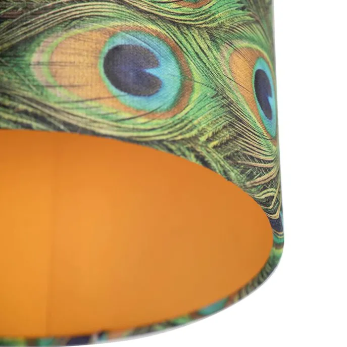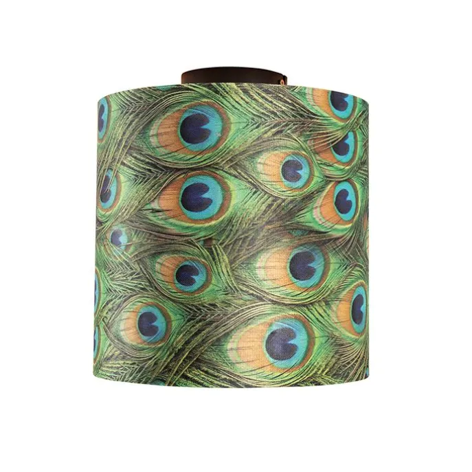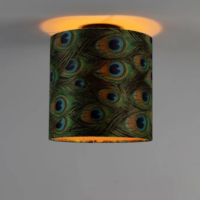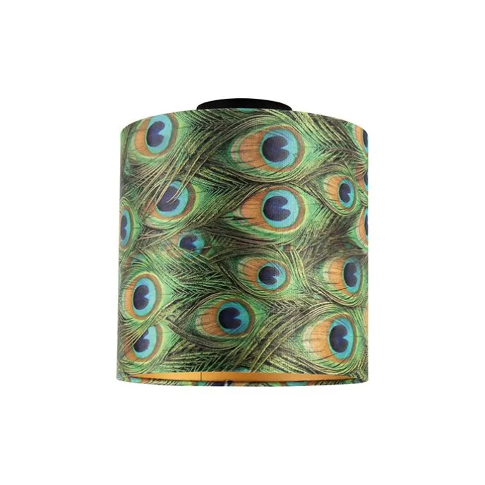 Plafondlamp met velours kap pauw met goud 25 cm – Combi zwart