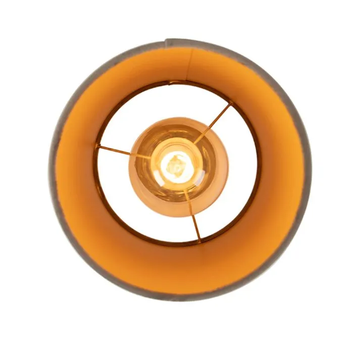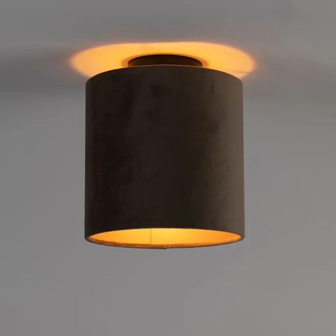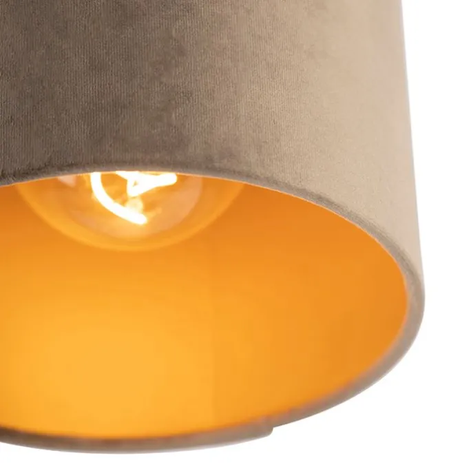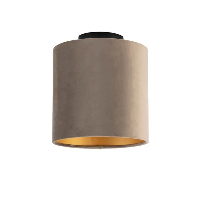 Plafondlamp met velours kap taupe met goud 20 cm – Combi zwart