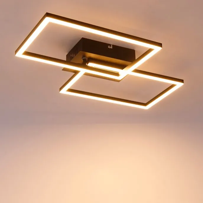 Plafondlamp vierkant zwart 3-staps dimbaar – Plazas Novo
