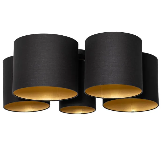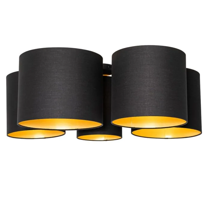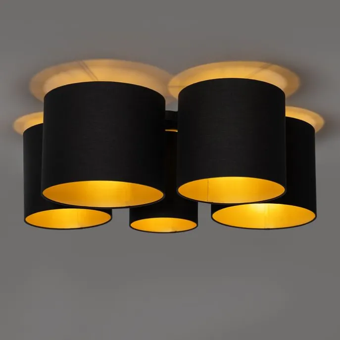 Plafondlamp zwart met gouden binnenkant 5-lichts – Multidrum
