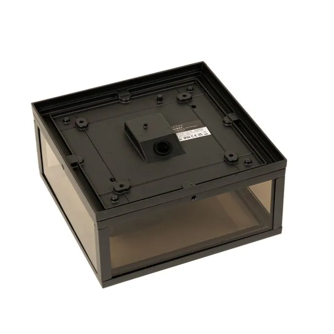 Plafondlamp Charlois is één van onze bestsellers, en wij begrijpen wel waarom! Door zijn materiaal keuze van aluminium in een zwarte kleur, is het een echte moderne lamp. Dankzij de 2 lichtpunten van de Charlois valt deze plafondlamp meteen op! Het smoke glas zorgt voor extra sfeer. De plafondlamp voor buiten heeft een breedte van 24 cm, is 24 cm lang en 11.5 cm hoog. De plafondlamp voor buiten heeft E27 fittingen. Zorg dat je de lichtbronnen er nog los bij besteld. Door zijn IP-waarde van IP44 is hij geschikt voor beschutte plekken zoals tegen het huis, de carport of onder een afdak. Deze buitenplafondlamp is dimbaar, maar een dimmer is niet inbegrepen. Mist jouw interieur of buitenplek nog wat sfeer? Dan is Charlois de perfecte keuze.