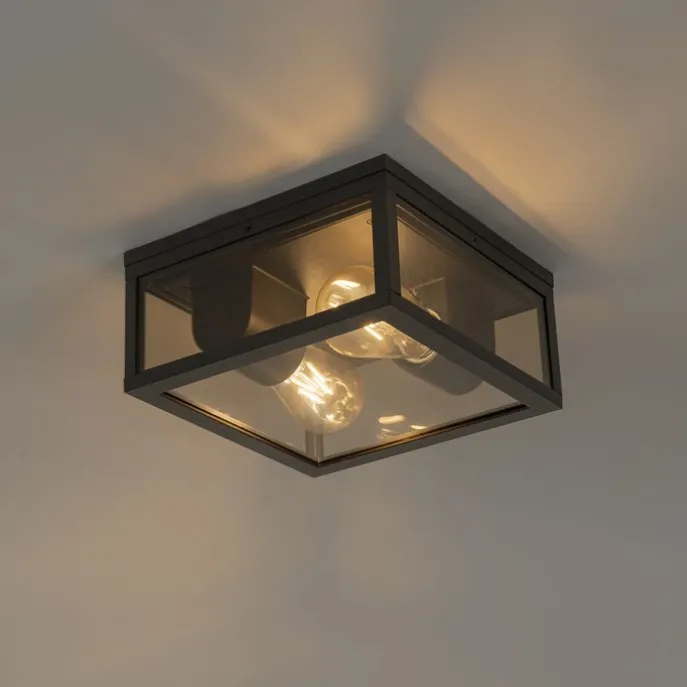 Plafondlamp zwart met smoke glas 2-lichts IP44 – Charlois