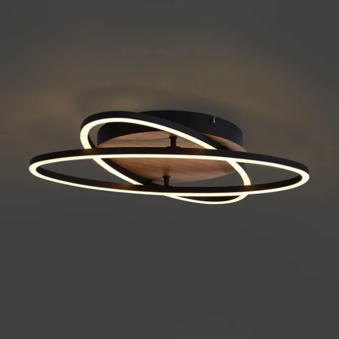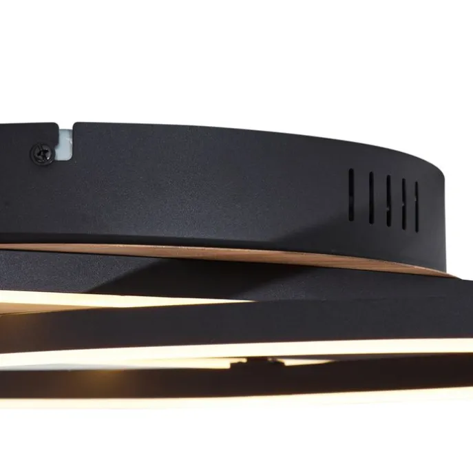 Plafondlamp zwart met walnoot hout incl. LED 3-staps dimbaar 2-lichts – Kane