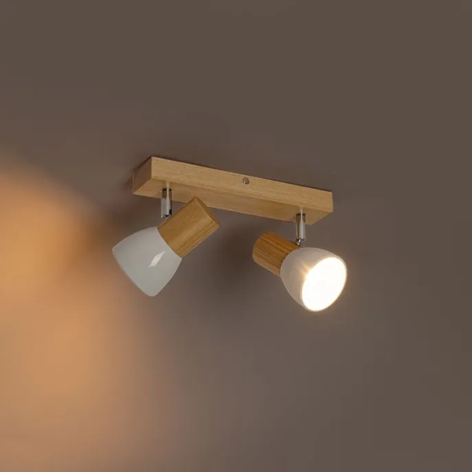 Plafondspot hout en wit 2-lichts verstelbaar – Thorin