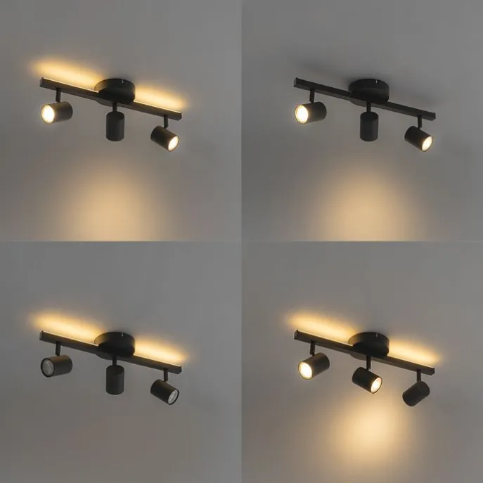Plafondspot zwart GU10 50mm 3-lichts incl. backlight – Back Up