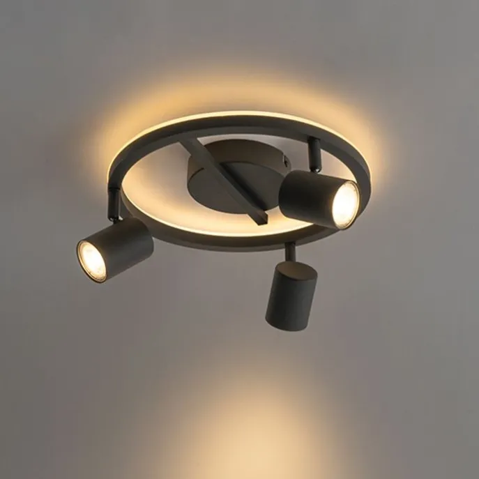 Plafondspot zwart GU10 50mm 3-lichts rond incl. backlight – Back Up