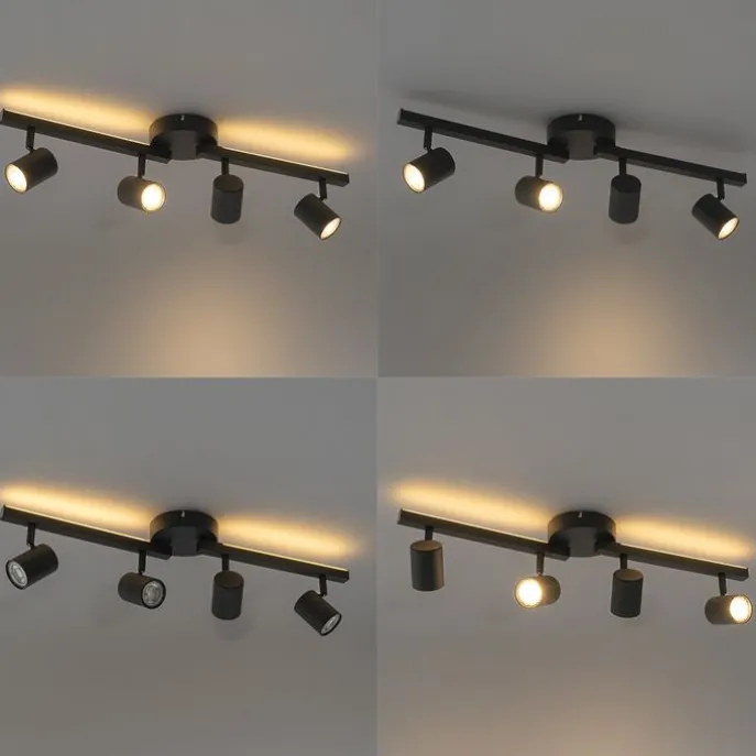 Plafondspot zwart GU10 50mm 4-lichts incl. backlight – Back Up