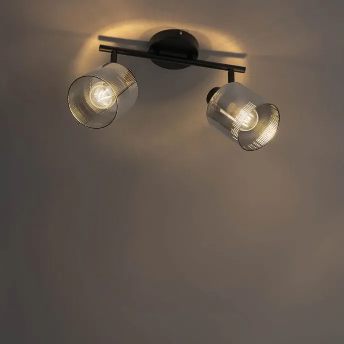 Plafondspot zwart met smoke glas 2-lichts verstelbaar – Laura
