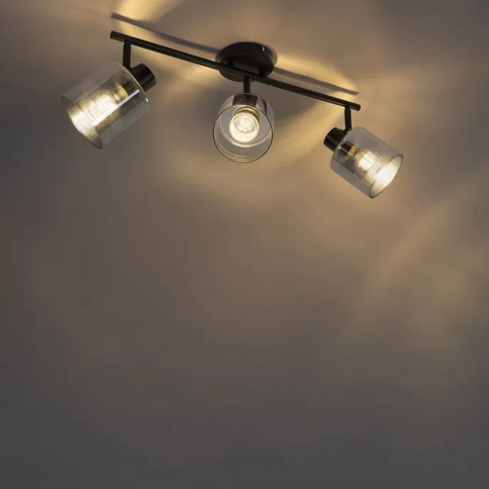 Plafondspot zwart met smoke glas 3-lichts verstelbaar – Laura