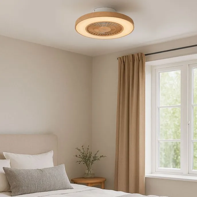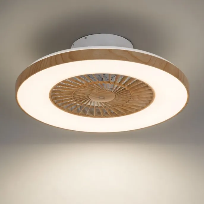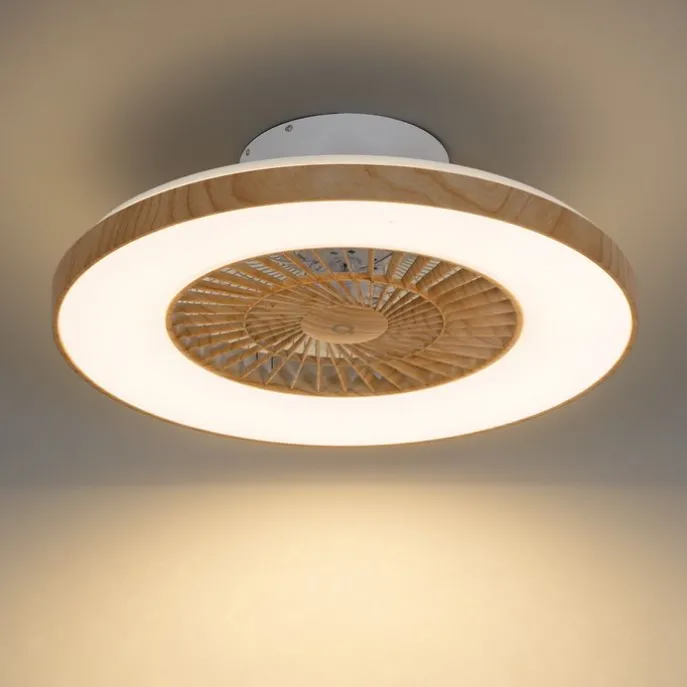 Plafondventilator hout print 60cm incl. LED dimbaar met afstandsbediening – Climo