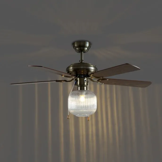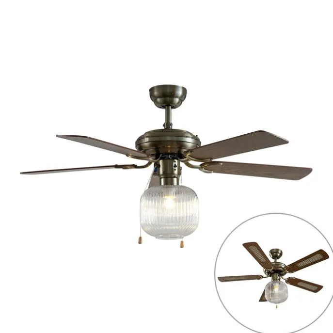 Plafondventilator messing met hout 107.5cm met trekschakelaar – Mistral Karel