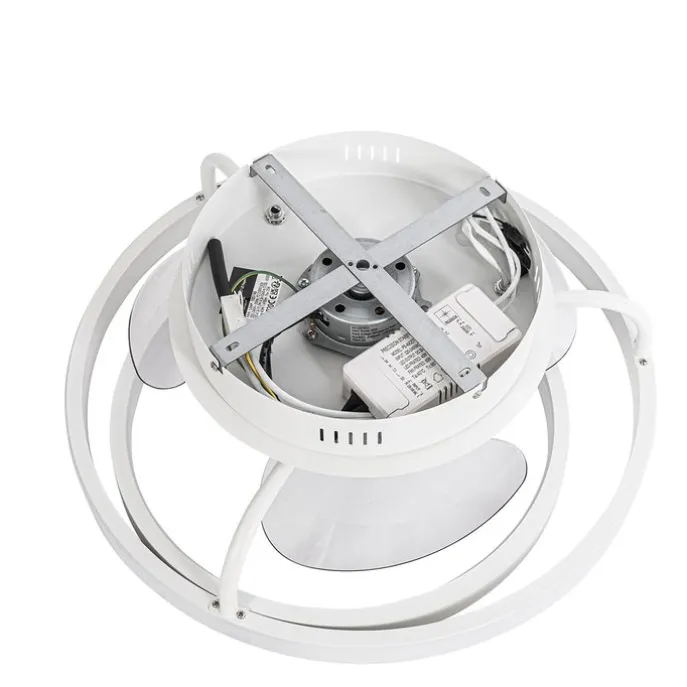 Plafondventilator Kees is een echte eyecatcher voor in een design interieur! De lamp is gemaakt van staal en is wit. De plafondventilator beschikt over niet-vervangbare LED verlichting. Kees heeft een diameter van 46.5 cm en een hoogte van 17 cm. De niet-vervangbare LED verlichting verbruikt 40 watt en gaat gemiddeld 30000 branduren mee. Het LED beschikt over maximaal 1490 lumen, dat maakt hem een echte krachtpatser! Met de meegeleverde afstandsbediening kan je het licht dimmen de kleur van het licht instellen (tussen de 2700K en 6500K). Kees heeft een ingebouwde timer waardoor je kan instellen dat de ventilator na 2 of 4 uur uit zichzelf uit gaat, daardoor kan je in slaap vallen met een briesje zonder energie te verspillen. Kees is ook een ontzettend stille ventilator, de zachtste stand heeft een geluidsniveau van 43dB, wat vergelijkbaar is met het geritsel van bladeren. Dé toevoeging aan jouw interieur, Kees!