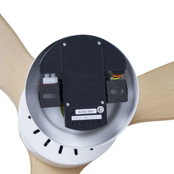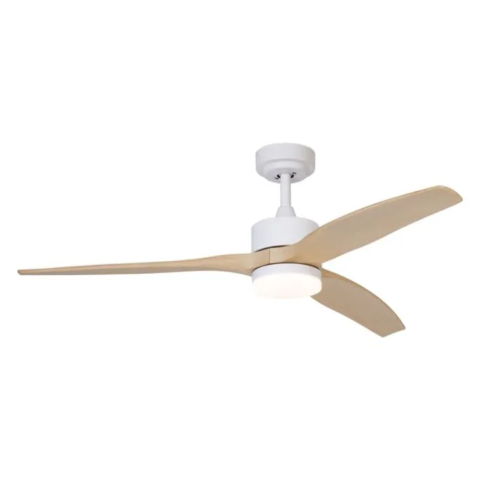 Plafondventilator wit met hout print 132cm incl. LED dimbaar met afstandsbediening – Joly