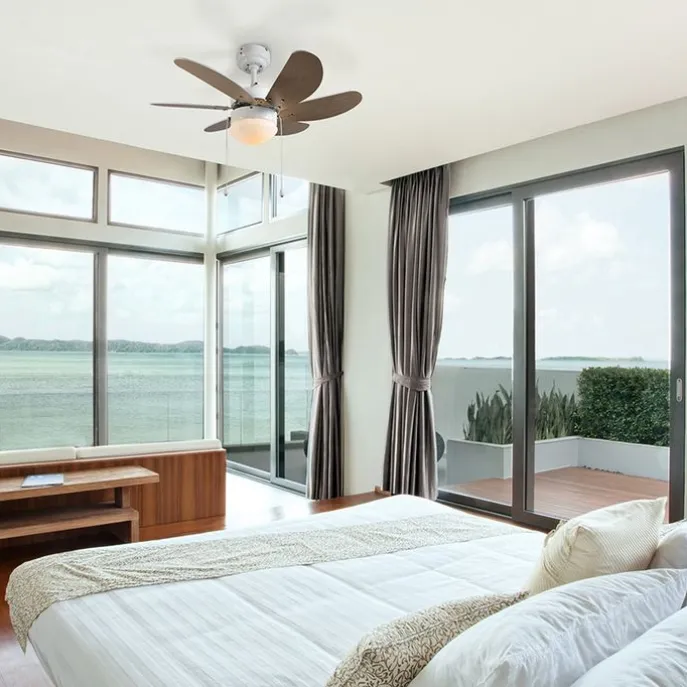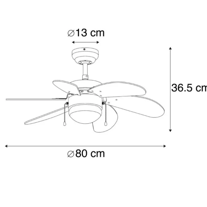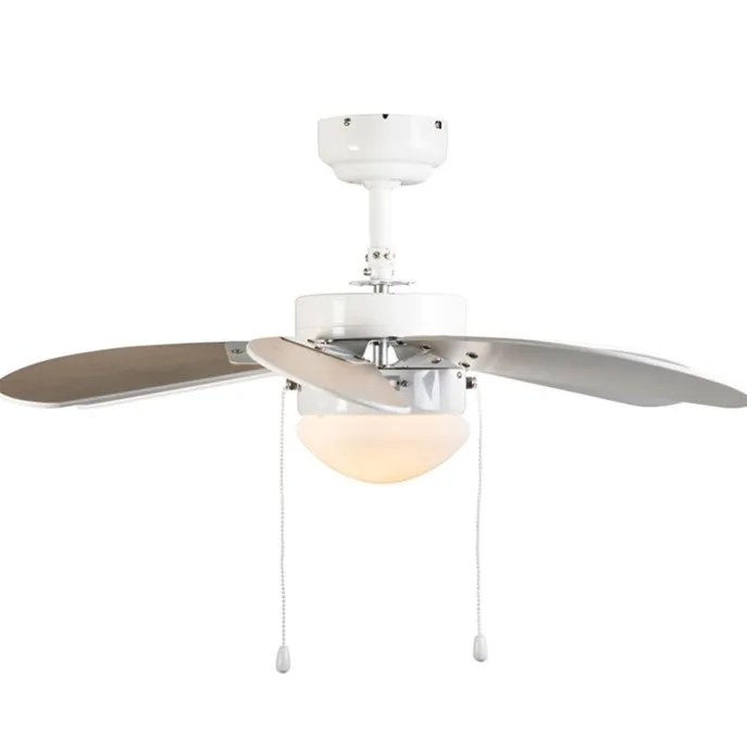 Plafondventilator wit met hout print 80cm met trekschakelaar – Fresh