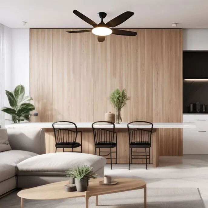 Ben je op zoek naar de perfecte multifunctionele plafondventilator? Ga dan voor Vifte! Deze ventilator is erg handig door haar verschillende functionaliteiten. De ventilator heeft een zomer- en een winterstand, waardoor deze kan zorgen voor een fris windje in de zomer en een goede luchtverdeling van de warme lucht in de winter. Daarnaast heeft deze plafondventilator een geïntegreerde niet-vervangbare LED van maximaal 1600 lumen en maximaal 3500 kelvin met een Wattage van 72 Watt. Je kunt deze LED dimmen in zowel lumen als kelvin, waardoor deze ventilator perfect geschikt is voor zowel functionele als sfeerverlichting. De ventilator is 36 cm hoog en heeft een diameter van 130 cm. De montageplaat heeft een diameter van 14,5 cm. De ventilator wordt geleverd met afstandsbediening, waarmee je dus zelf de lichtsterkte, lichtkleur en stand van de ventilator kan bepalen. Deze afstandsbediening is nog niet voorzien van één 23A batterij. Het aantal DB dat Vifte produceert ligt tussen de 34-45 DB. De geschikte ruimte om te koelen hangt af van de lengte van de bladen, deze is 52 cm. Dat betekent dat Vifte geschikt is voor een ruimte van 12-25 m². Is de Vifte ventilator jouw perfecte match met haar strakke, zwarte en moderne design?