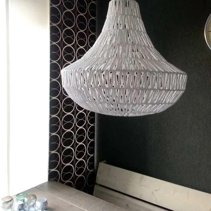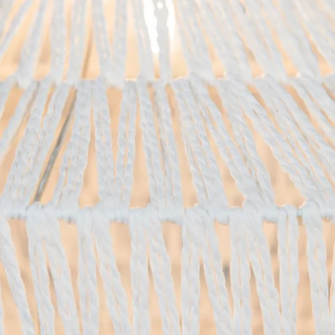 Hanglamp Lina Cono 50 valt op door zijn unieke en speelse ontwerp. Hij is uitgevoerd in stevig wit touw met staal, wat kenmerkend is voor het design van deze lamp. Hang deze lamp bijvoorbeeld boven de eetkamertafel of in de hal voor een gezellige sfeer. Dankzij het open ontwerp van de kap, zal het licht op een speelse manier verspreid worden. De Lina Cono 50 heeft een diameter van 48,5 cm en een hoogte van 198 cm, deze kun je bij de installatie eventueel nog inkorten. De witte lampenkap heeft een hoogte van 43 cm. De montageplaat heeft een diameter van 12 cm. Het snoer heeft een lengte van 150 cm. De lamp heeft een E27 fitting en wordt exclusief lichtbron geleverd, zorg dat je deze er dus nog bij besteld (max. 60 Watt). Tevens verkrijgbaar in andere vormen, leuk om te combineren.
