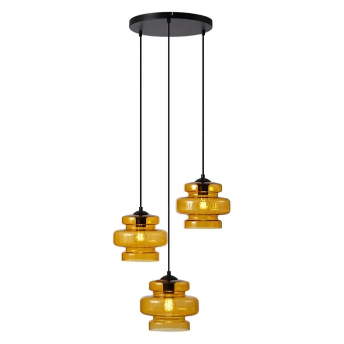 Retro hanglamp zwart met oranje glas 3-lichts – Denise