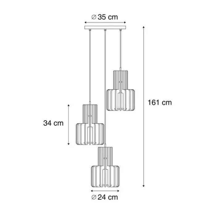 Retro hanglamp zwart met taupe 3-lichts – Felt